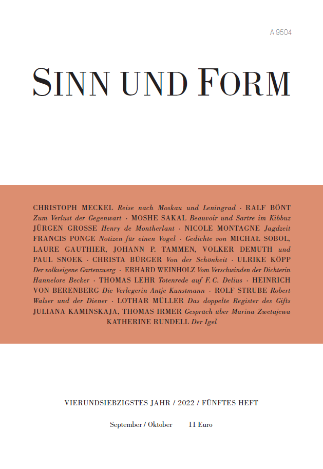 - SINN UND FORM, essay Jagdzeit, Heft 5, September / Oktober 2022